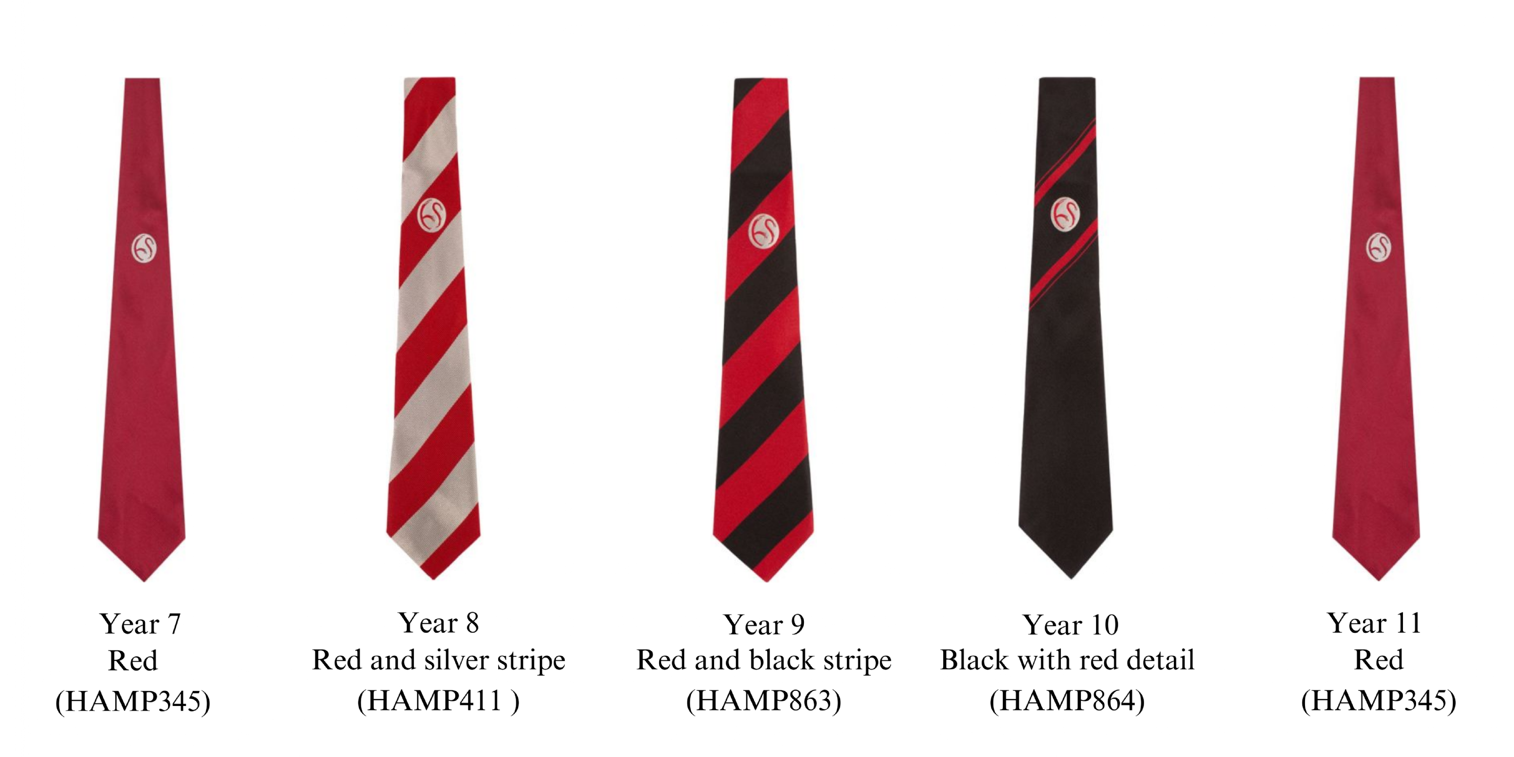 The tie assigned below will move with the year group through their time at Hamsptead School. There will be no need to purchase a new design.