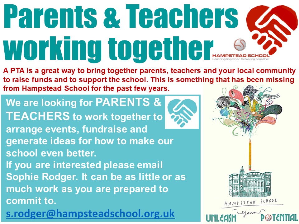 We are looking for parents who would be willing to join us in attending and organising events to build our community and raise money for the school. If you are interested in being involved in any way, please email: s.rodger@hampsteadschool.org.uk or enquiries@hampsteadschool.org.uk